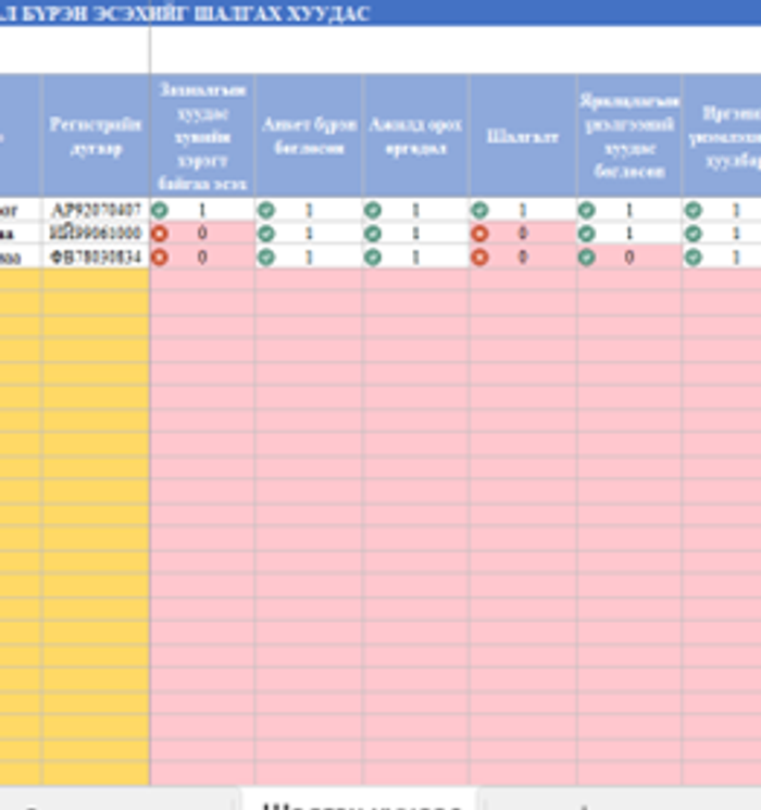 - ХУВИЙН ХЭРГИЙН МАТЕРИАЛ БҮРЭН ЭСЭХИЙГ ШАЛГАХ ХУУДАС