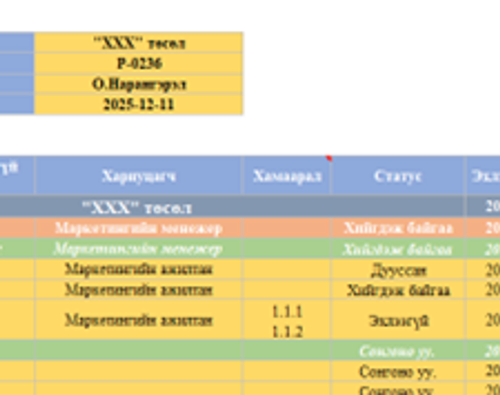 - ТӨСЛИЙН ХАРИЛЦААНЫ ТӨЛӨВЛӨГӨӨ