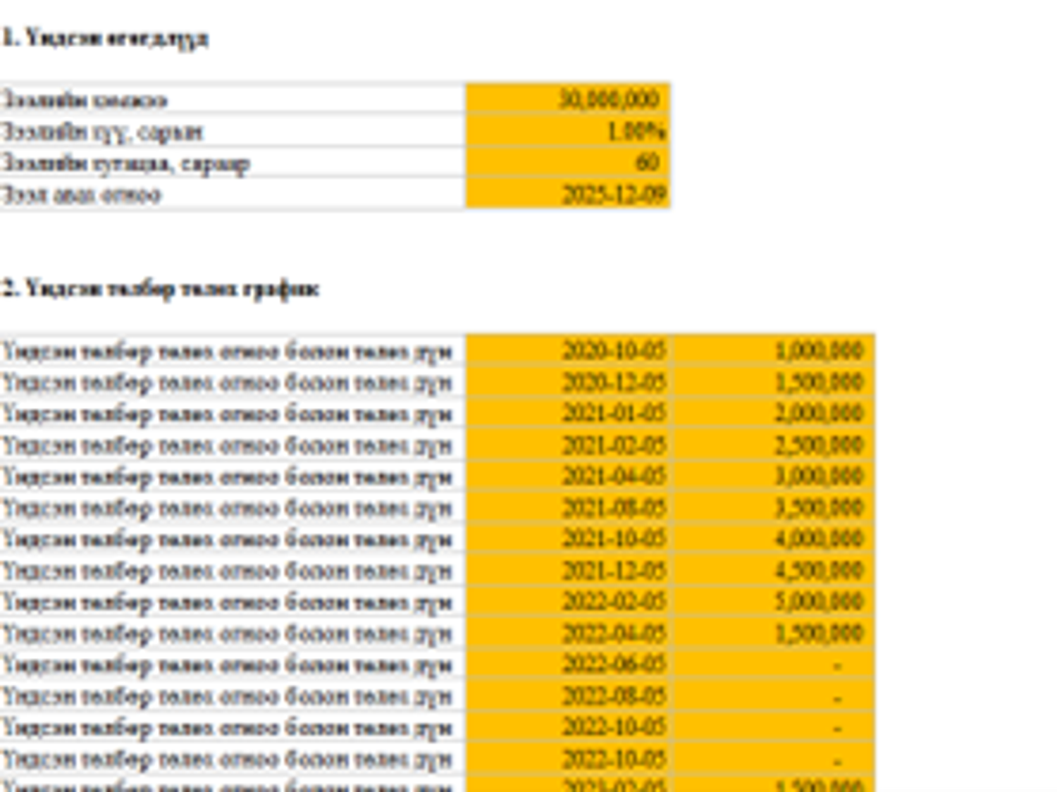 Үндсэн төлбөрийг сонгогдсон саруудад хуваан төлөх нөхцөлтэй зээлийн тооцоолол