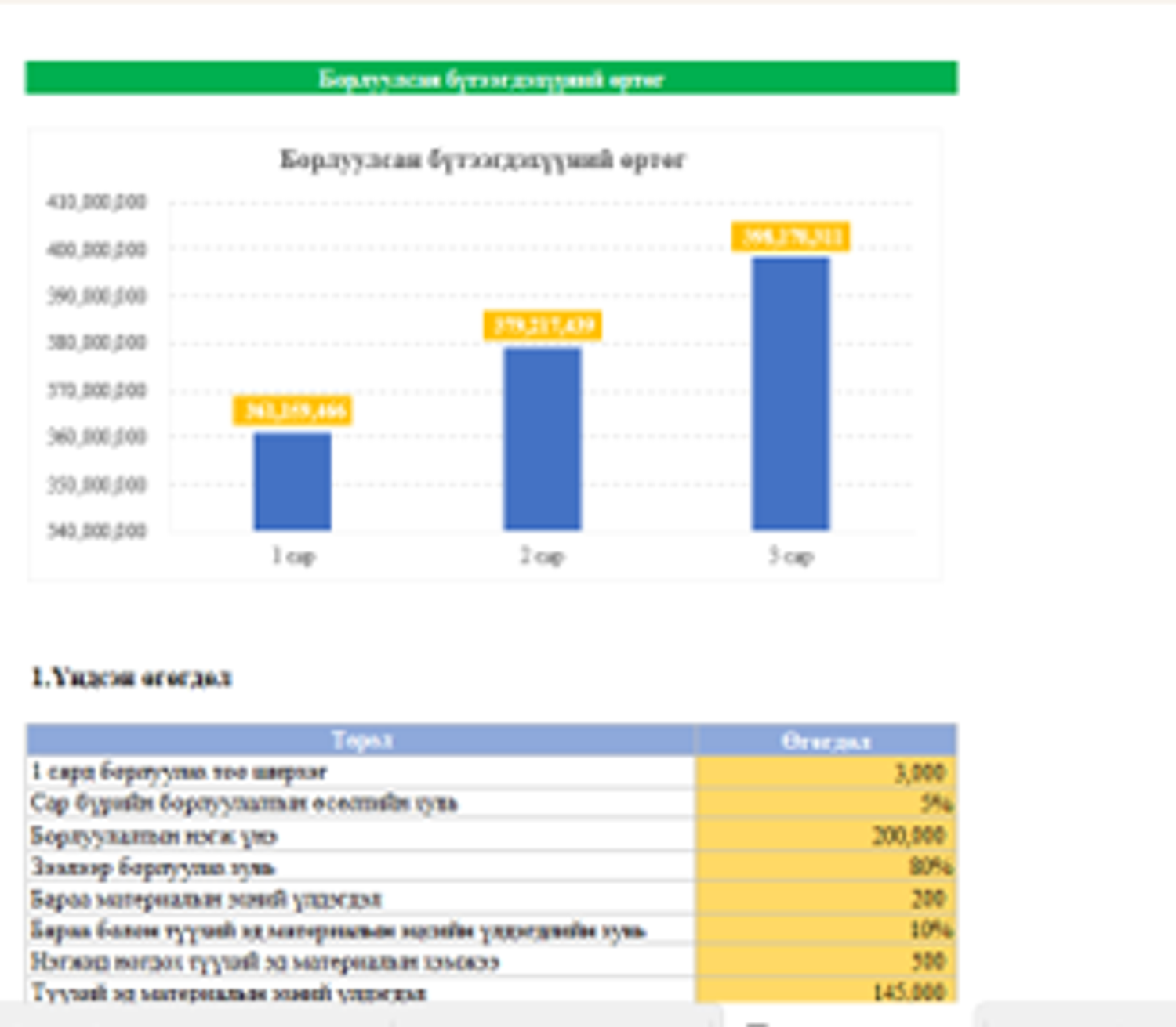 Санхүүгийн үйл ажиллагаатай холбоотой ажиллах хүчний, ашигт ажиллагаа, борлуулалт, мөнгөн гүйлгээ, хөрөнгө оруулалт, худалдан авалт, элэгдэл болон эрчим хүчний зардлыг тооцоолох зэрэг 35 загвараас та сонгон авах боломжтой.