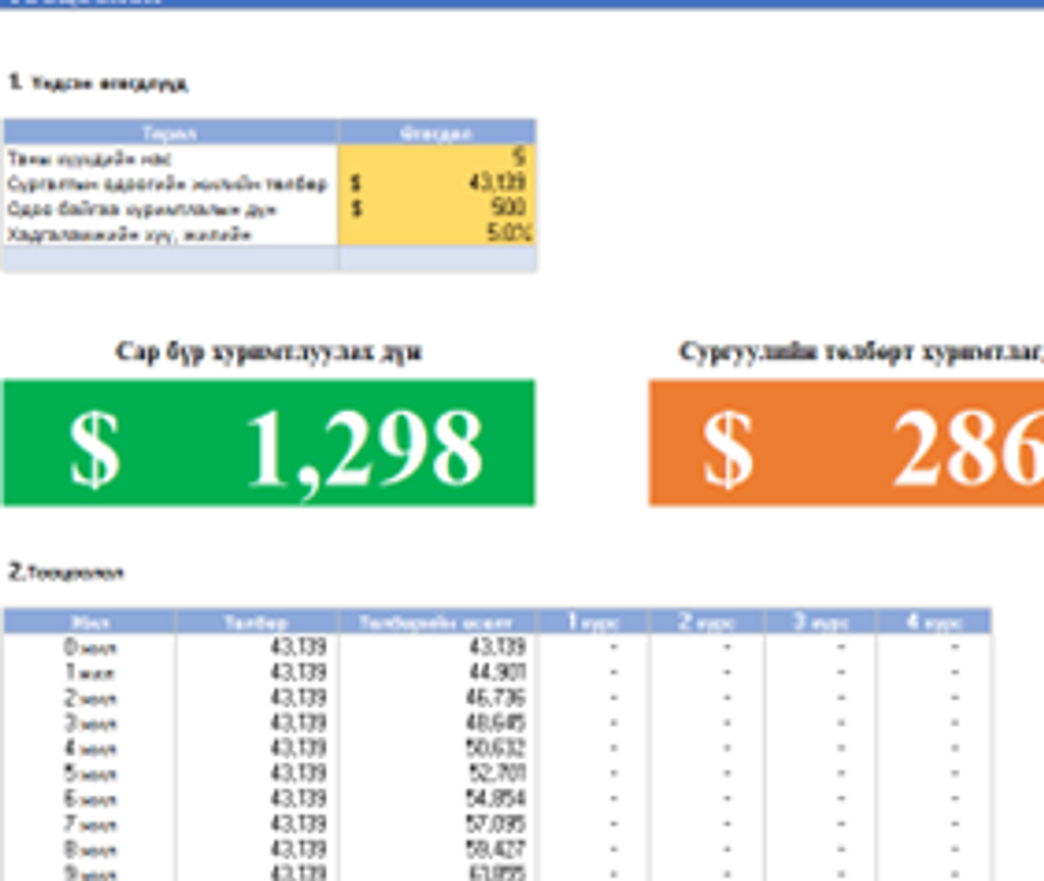Хүүхдээ АНУ-ын нэр хүндтэй сургуульд сургахыг хүсвэл сургалтын төлбөрийг эртнээс хуримтлуулах нь зүйтэй. Хүүхдийн нас, сургуулийн төлбөр, хадгаламж эсвэл хөрөнгө оруулалтын өгөөжөөс хамааран сар бүр хуримтлуулах шаардлагатай мөнгийг тооцоолох загварыг бид боловсруулан хүргэж байна.