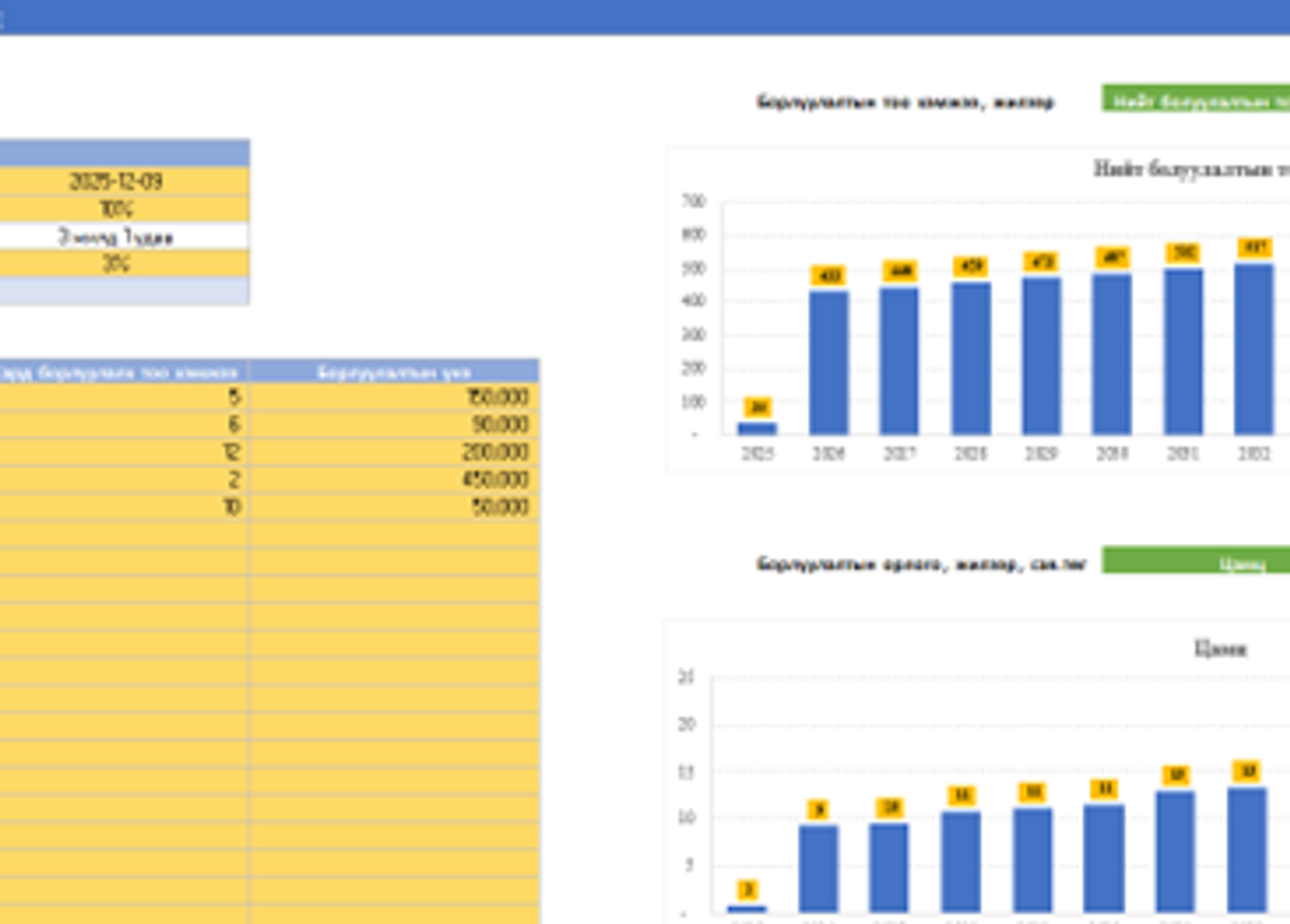 Санхүүгийн үйл ажиллагаатай холбоотой ажиллах хүчний, ашигт ажиллагаа, борлуулалт, мөнгөн гүйлгээ, хөрөнгө оруулалт, худалдан авалт, элэгдэл болон эрчим хүчний зардлыг тооцоолох зэрэг 35 загвараас та сонгон авах боломжтой.