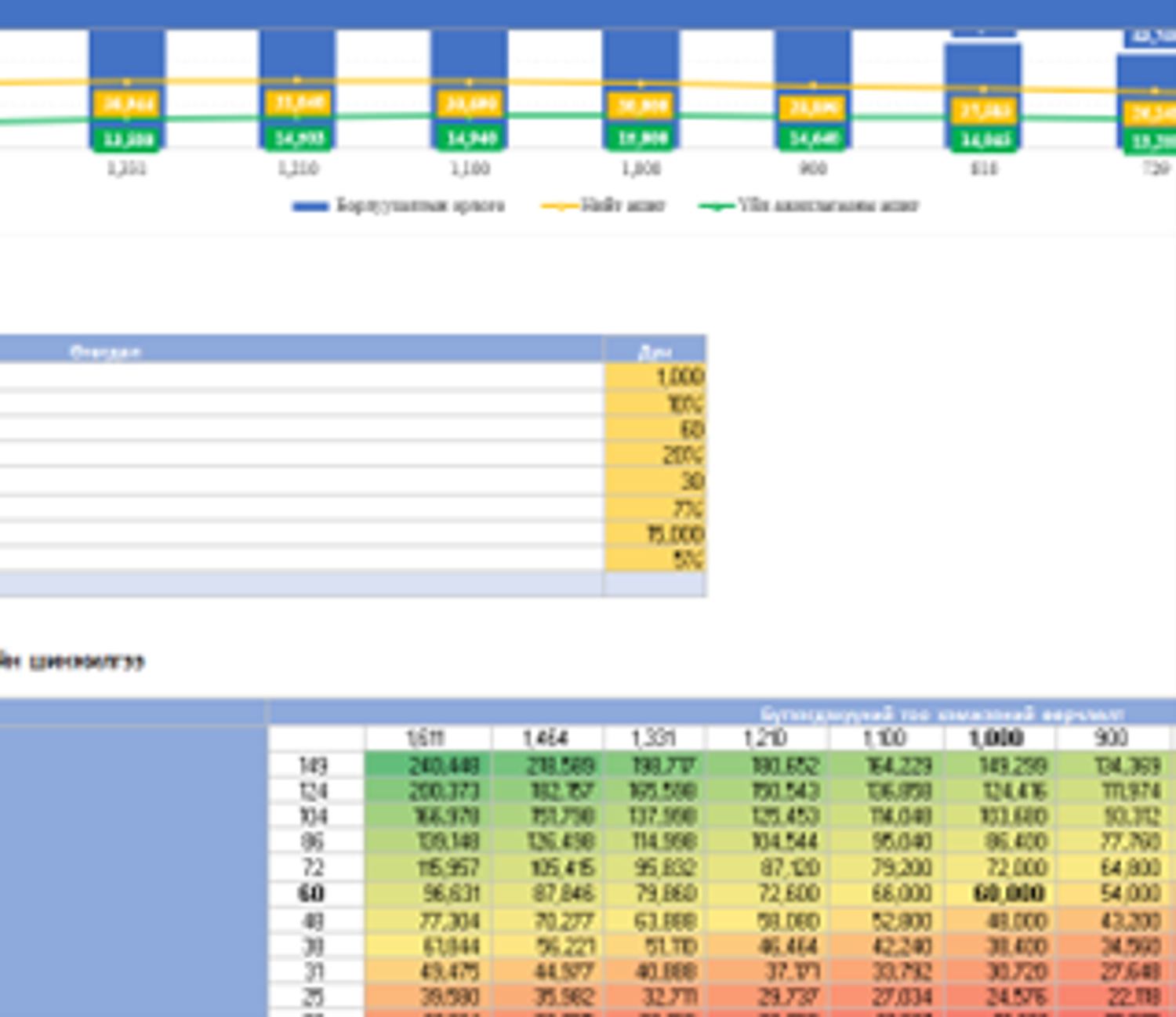 Санхүүгийн үйл ажиллагаатай холбоотой ажиллах хүчний, ашигт ажиллагаа, борлуулалт, мөнгөн гүйлгээ, хөрөнгө оруулалт, худалдан авалт, элэгдэл болон эрчим хүчний зардлыг тооцоолох зэрэг 35 загвараас та сонгон авах боломжтой.